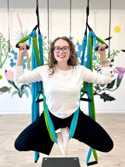 Ania blends her background in nursing with her current work as a PhD student in biomedical sciences to create an evidence-informed and heart-centered approach to movement. Her yoga trapeze classes focus on cultivating strength, flexibility, and awareness while using breath and alignment to guide each practice. Drawing from both science and intuition, Ania offers a supportive and restorative space where students can reconnect with their bodies, release tension, and explore the empowering balance between grounded stability and fluid motion.