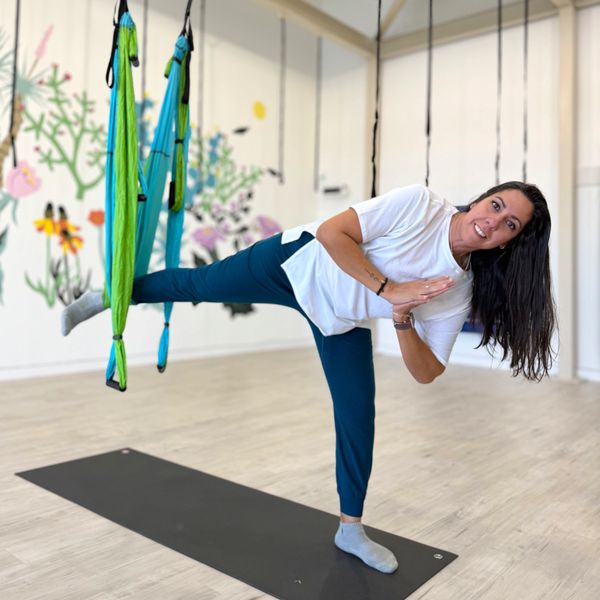 Her classes weave together strength, meditation, and balance, offering students tools to heal their bodies and cultivate inner peace. She teaches a wide variety of styles—Vinyasa, Power, Hatha, Hot (26 postures), Restorative, Yin, Aerial Yoga, Barre, Chair, Prenatal, Meditation, and Children’s Yoga—along with private sessions and corporate classes. Certified in CPR and recognized as a YACEP® (Yoga Alliance Continuing Education Provider), Christina brings both expertise and heart to every class. She is excited to share the joy of trapeze yoga and to help students explore new ways of moving, breathing, and connecting.